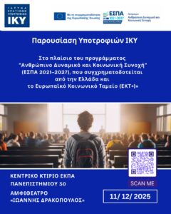 Ημερίδα ΙΚΥ με τίτλο «Παρουσίαση Υποτροφιών ΙΚΥ στο πλαίσιο του προγράμματος “Ανθρώπινο Δυναμικό και Κοινωνική Συνοχή” (ΕΣΠΑ 2021–2027), που συγχρηματοδοτείται από την Ελλάδα και το Ευρωπαϊκό Κοινωνικό Ταμείο (ΕΚΤ+)